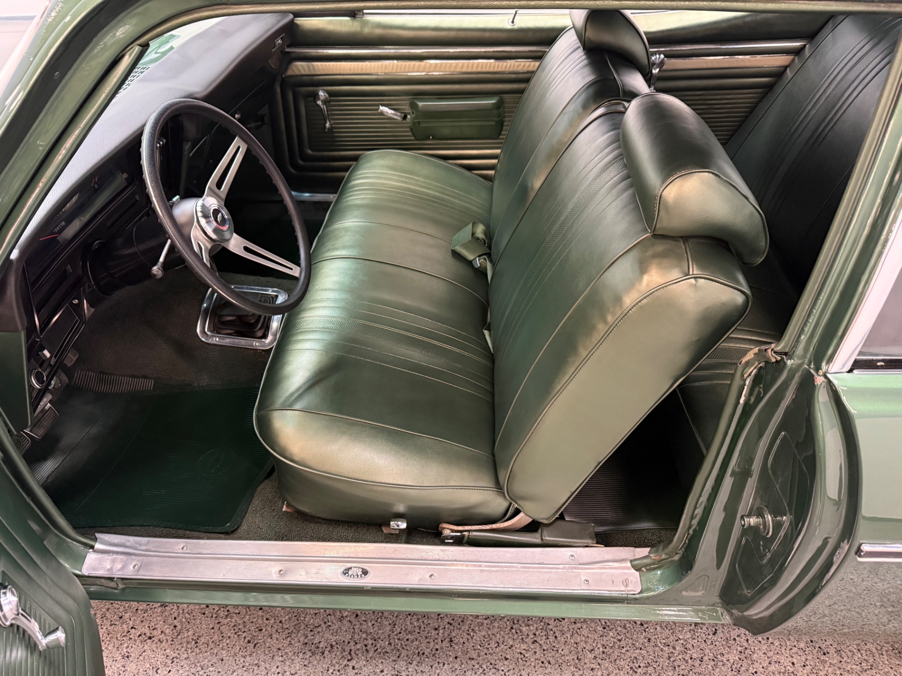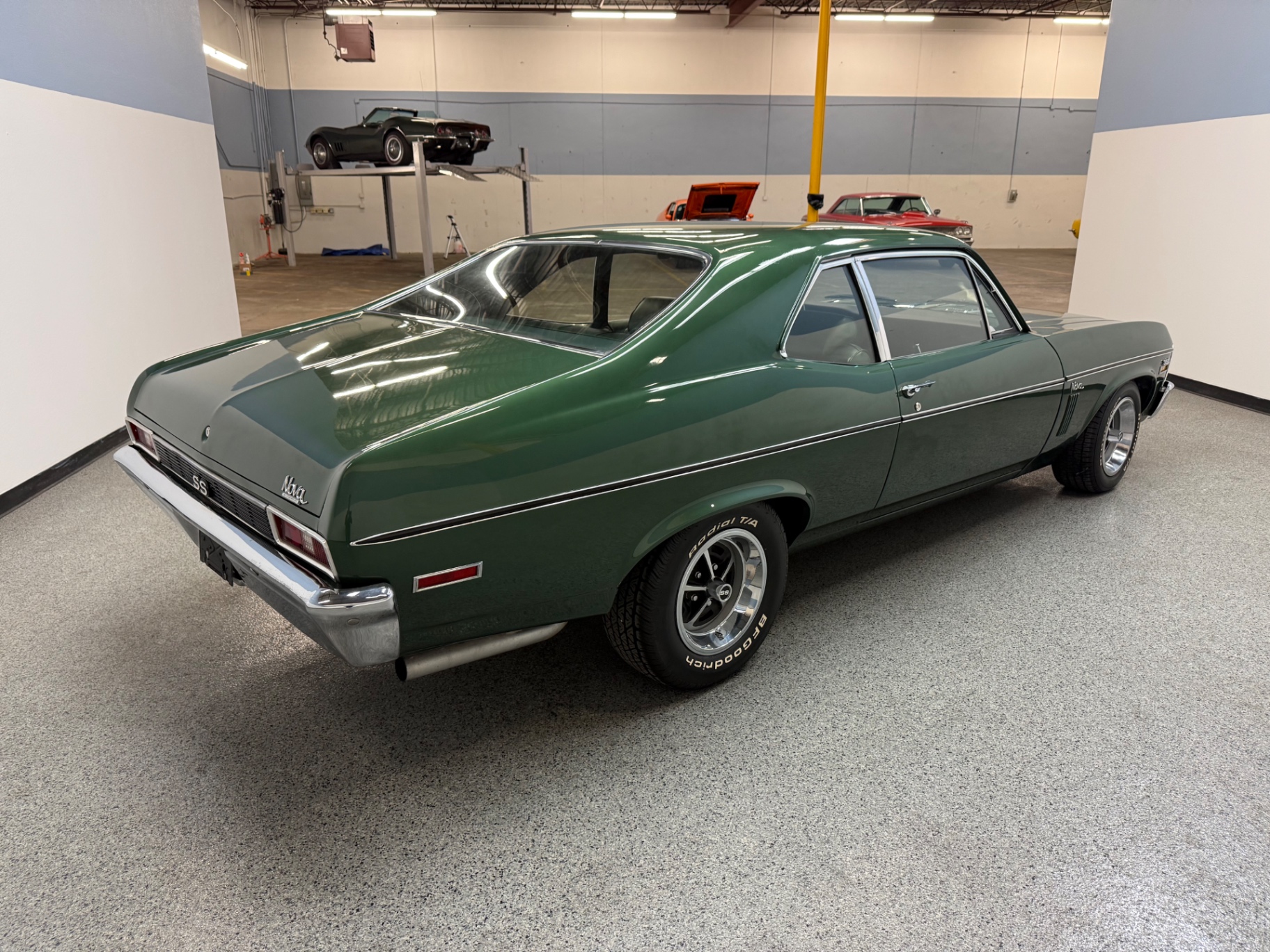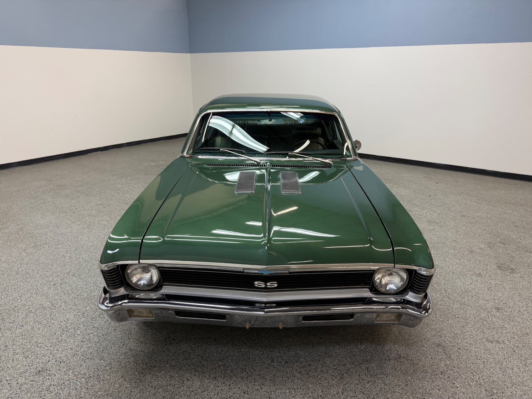 The exterior of this 1970 Chevrolet Nova is truly eye-catching. The Forest Green Poly color shines brightly, drawing attention without being overly flashy. It’s a classic color that ties back to the car's roots, making it a standout piece on any street or at any car show. The SS badge prominently displayed on the front grille adds a layer of authenticity that collectors appreciate.