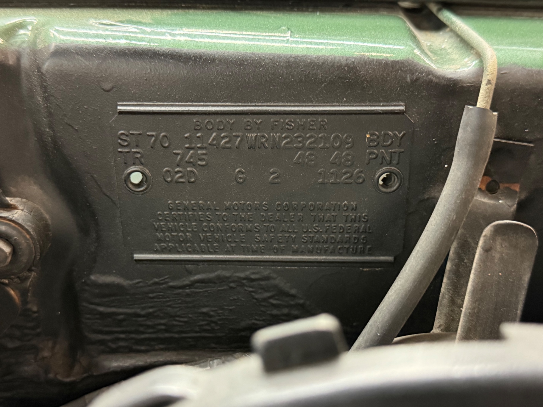 Stepping inside this Nova is like stepping back into an era known for style and tradition. The interior features matching green leather upholstery, enhancing both comfort and aesthetic appeal. The front bucket seats provide ample support to keep the driver and passenger secure during spirited drives. The dashboard layout is simple yet functional, with easy-to-read gauges that provide essential information and an AM/FM radio that keeps the ride enjoyable with a selection of classic tunes.