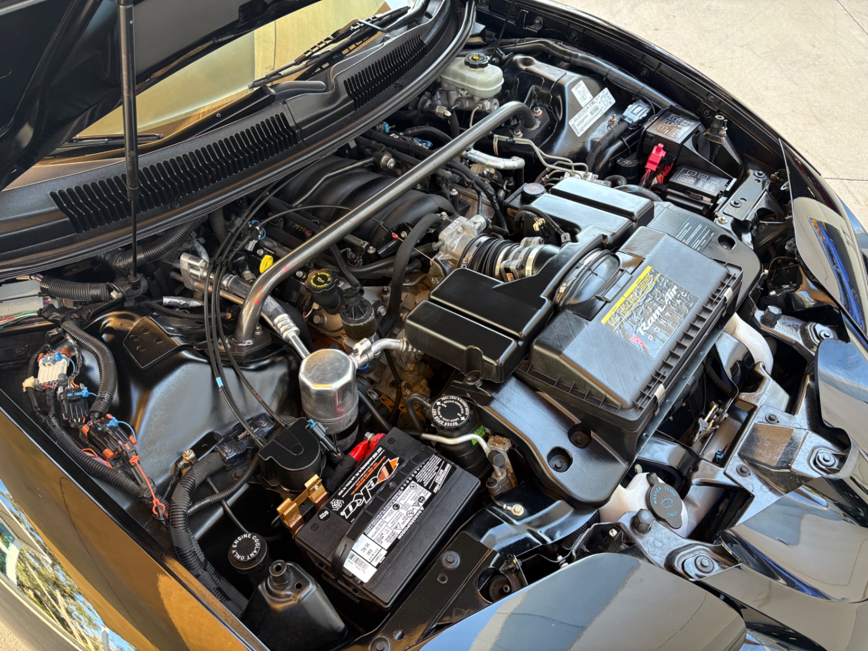 LS1 paired with a 6 speed manual transmission True WS6 Triple Black exterior and interior color T-Tops for an open-air driving experience Only 10,480 original miles! Plastic still on the factory carpet Upgraded Bluetooth/CD system with amplifier and two 10” subwoofers Performance sway bars, front and rear Drilled rotors and pads with caliper covers for enhanced braking Tinted windows for style and privacy Remote start and alarm system for convenience and security LED upgraded lights for better visibility Dual exhaust with powder-coated black rectangle tips for a sporty look Performance control arms and torque arms for better handling Hinson short throw shifter for precise gear changes Stance Bronze 19” wheels paired with Pirelli PZero tires (295/30/19 front and 275/30/19 rear)