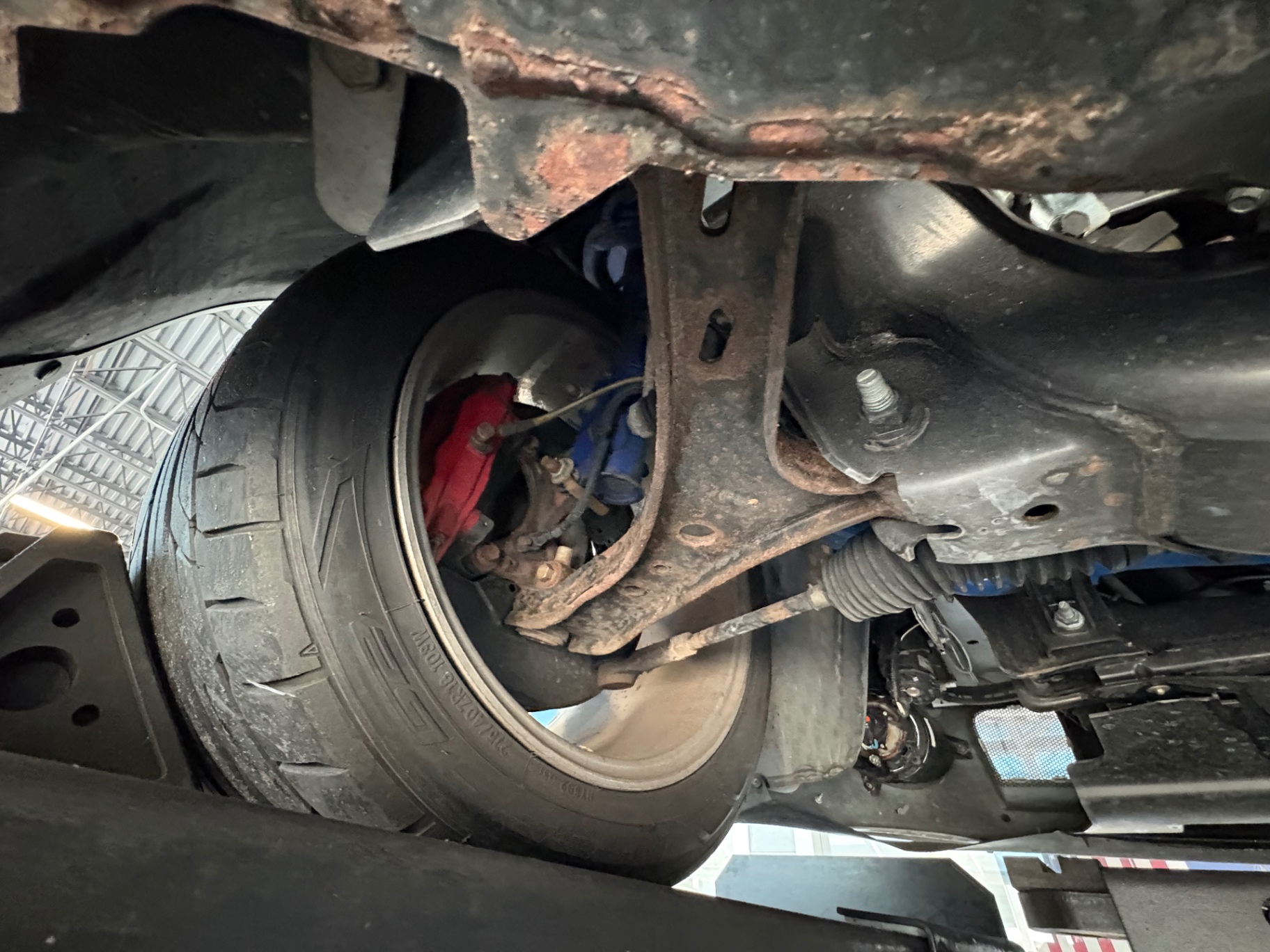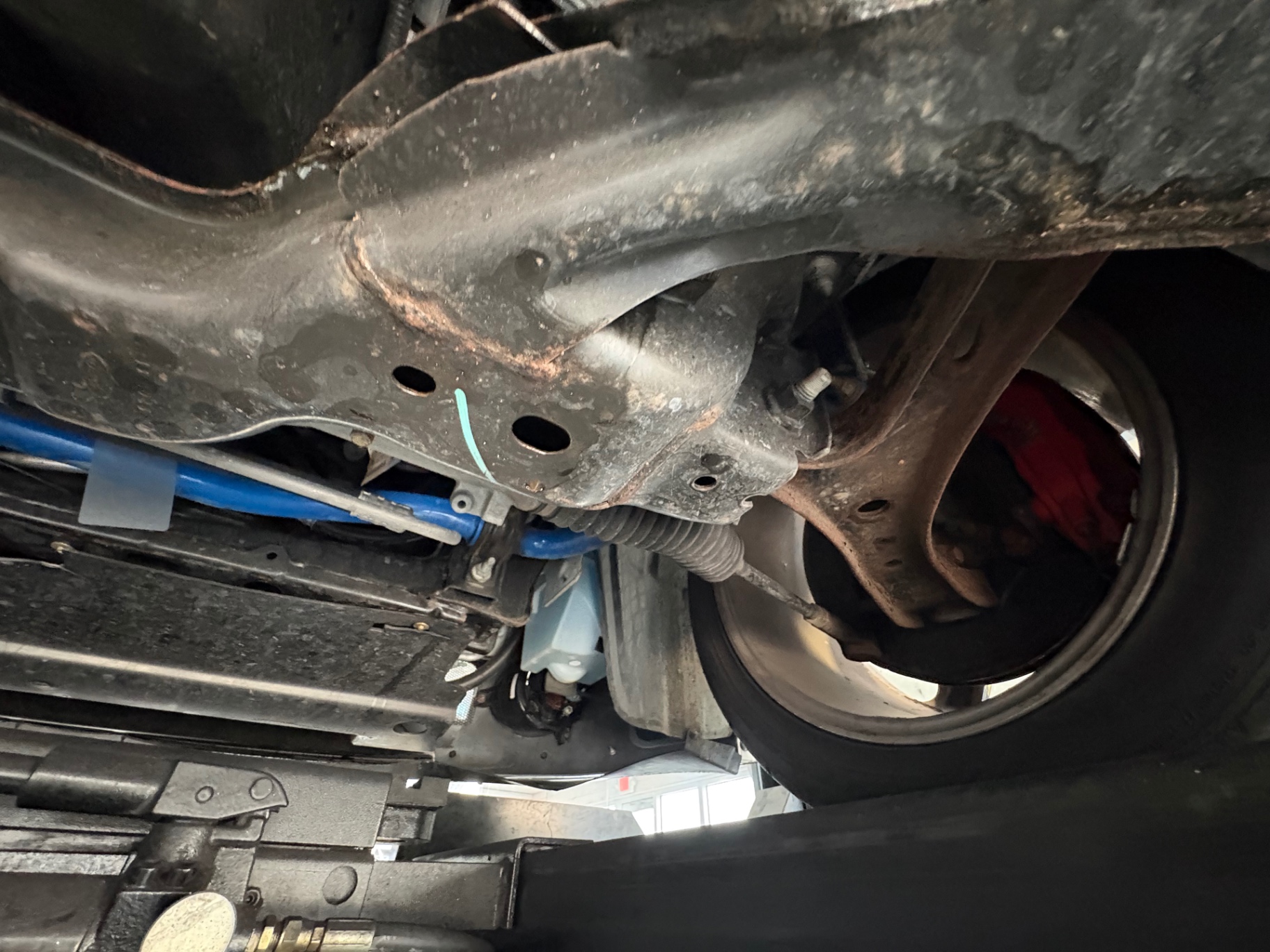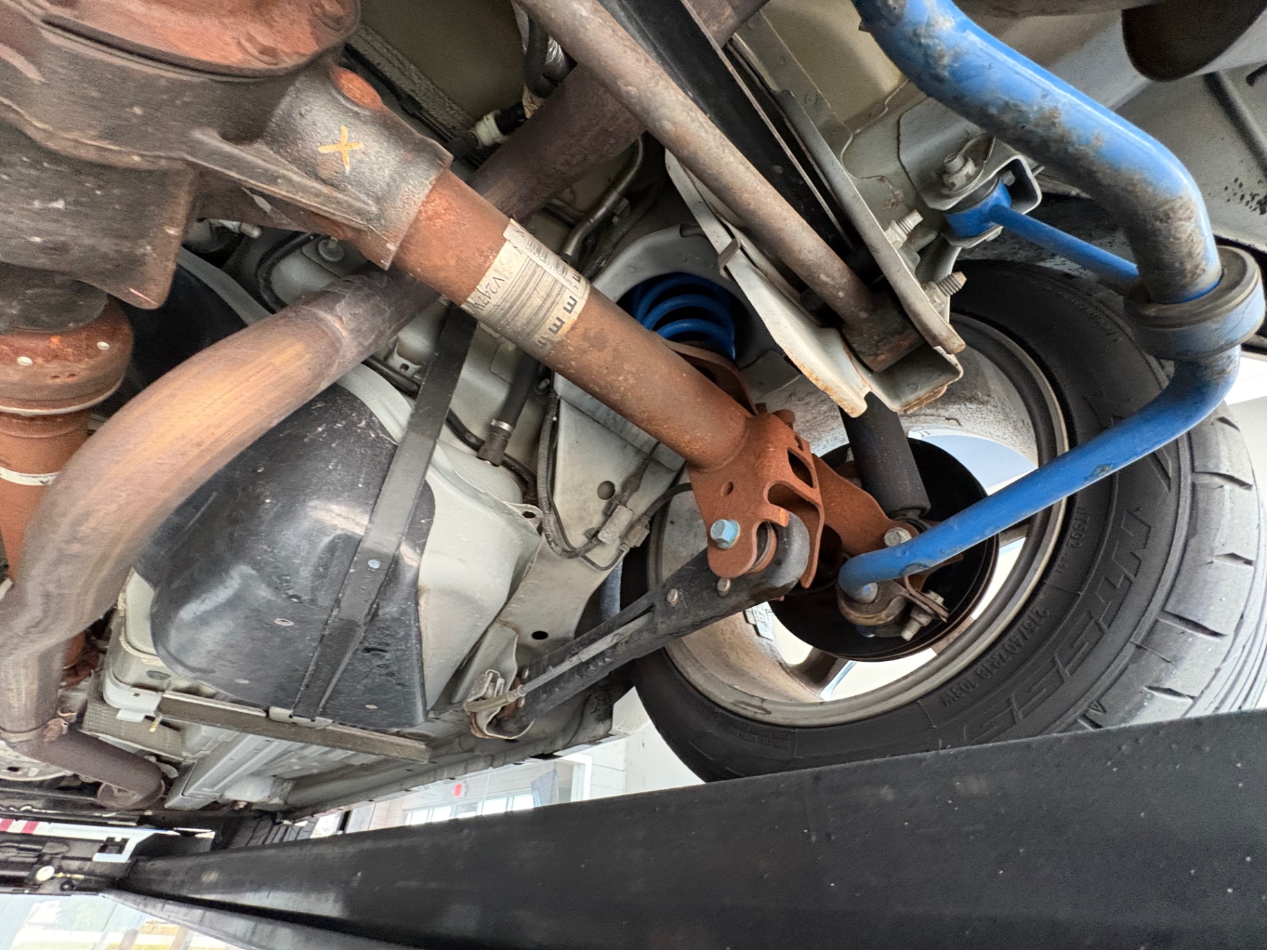 The transmission is a 5-speed manual Tremec TR-3650 with a short-throw shifter that provides precise gearing, allowing for quick shifts and an engaging driving experience. The rear end features a limited-slip differential with a 3.55:1 gear ratio, facilitating agile handling and improved traction on the road or track.