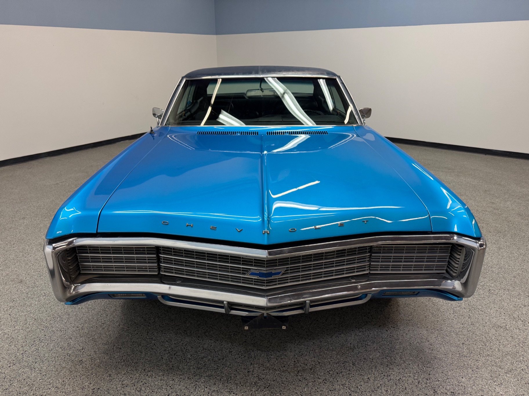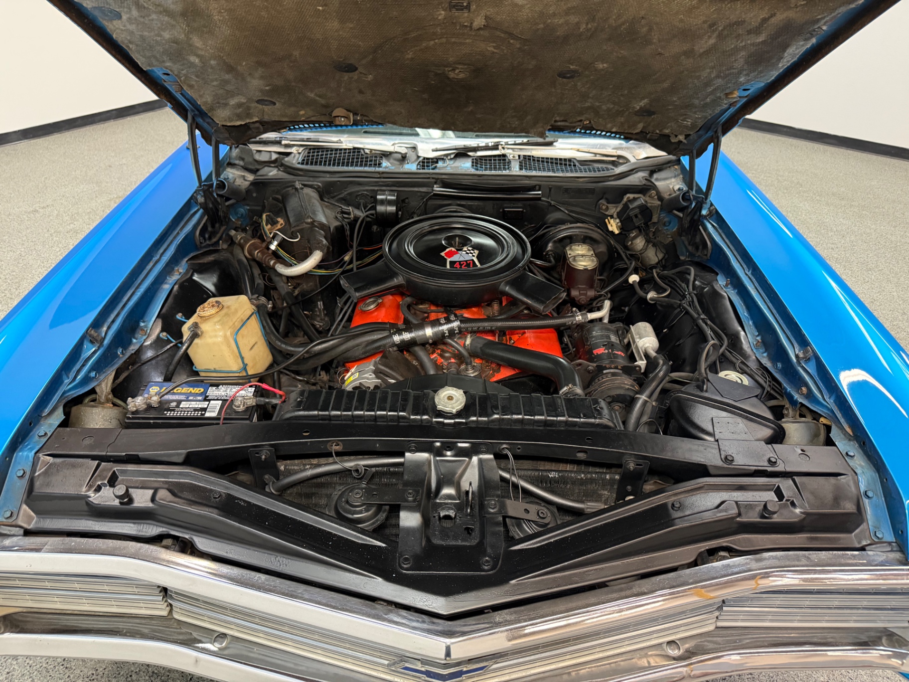 Numbers matching 427 cid (390 hp) engine 3-speed automatic transmission New paint finish Power steering Power brakes Hidden headlights Factory air conditioning Cloth interior 1 of only 256 427 cid/390 hp models produced Comfortable seating with ample space Wood trim accents on the interior