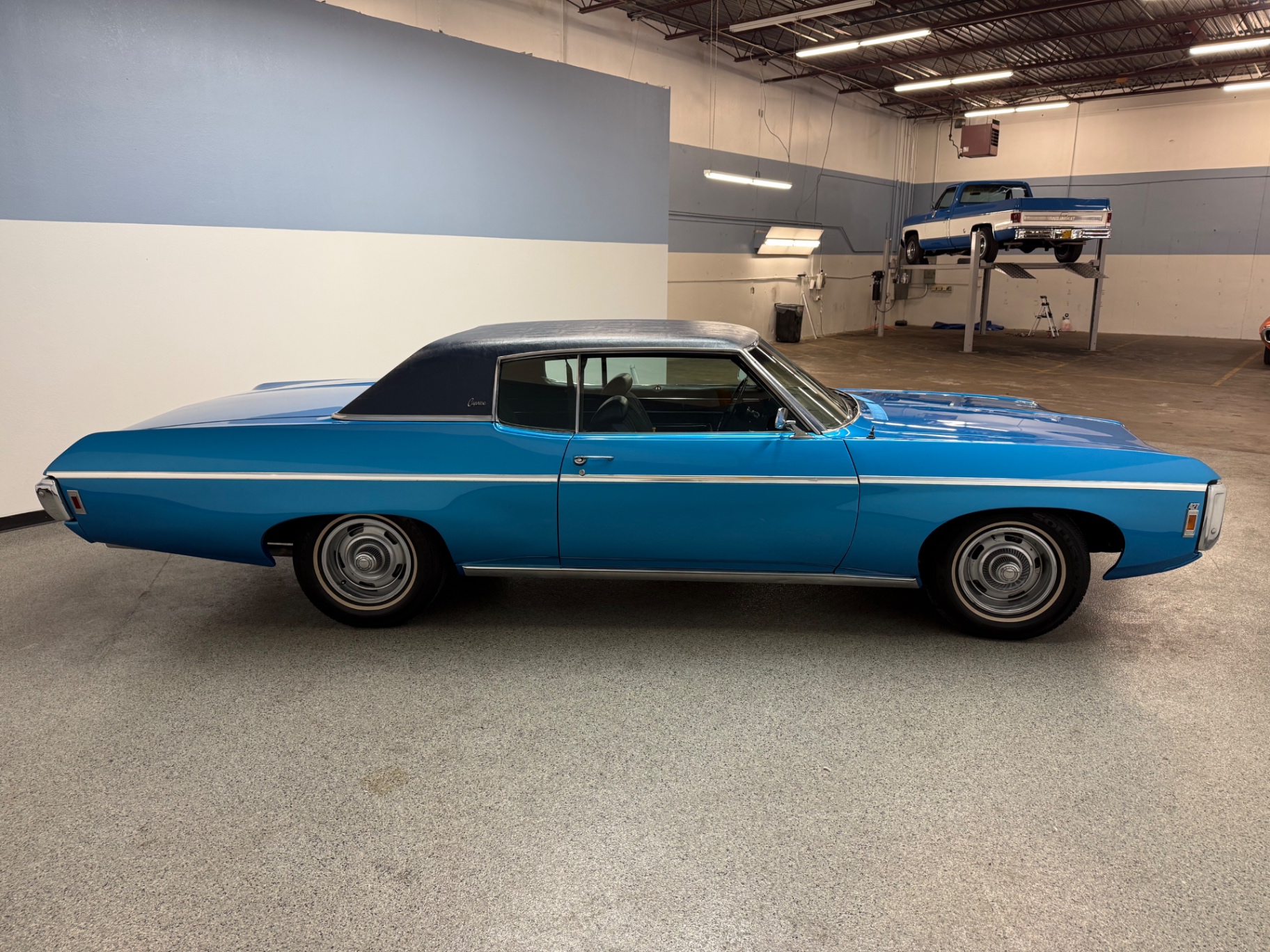 The 1969 Chevrolet Caprice stands as a remarkable piece of automotive history, representing the perfect blend of performance and style typical of late 1960s American sedans. This particular model is equipped with a numbers matching 427 cubic inch V8 engine, producing an impressive 390 horsepower. When driving this classic, you'll appreciate the power and sophistication that made the Caprice a favored choice among enthusiasts and collectors. The captivating blue exterior paired with a gray cloth interior gives it a timeless appeal, making it a standout addition to any classic car collection.
