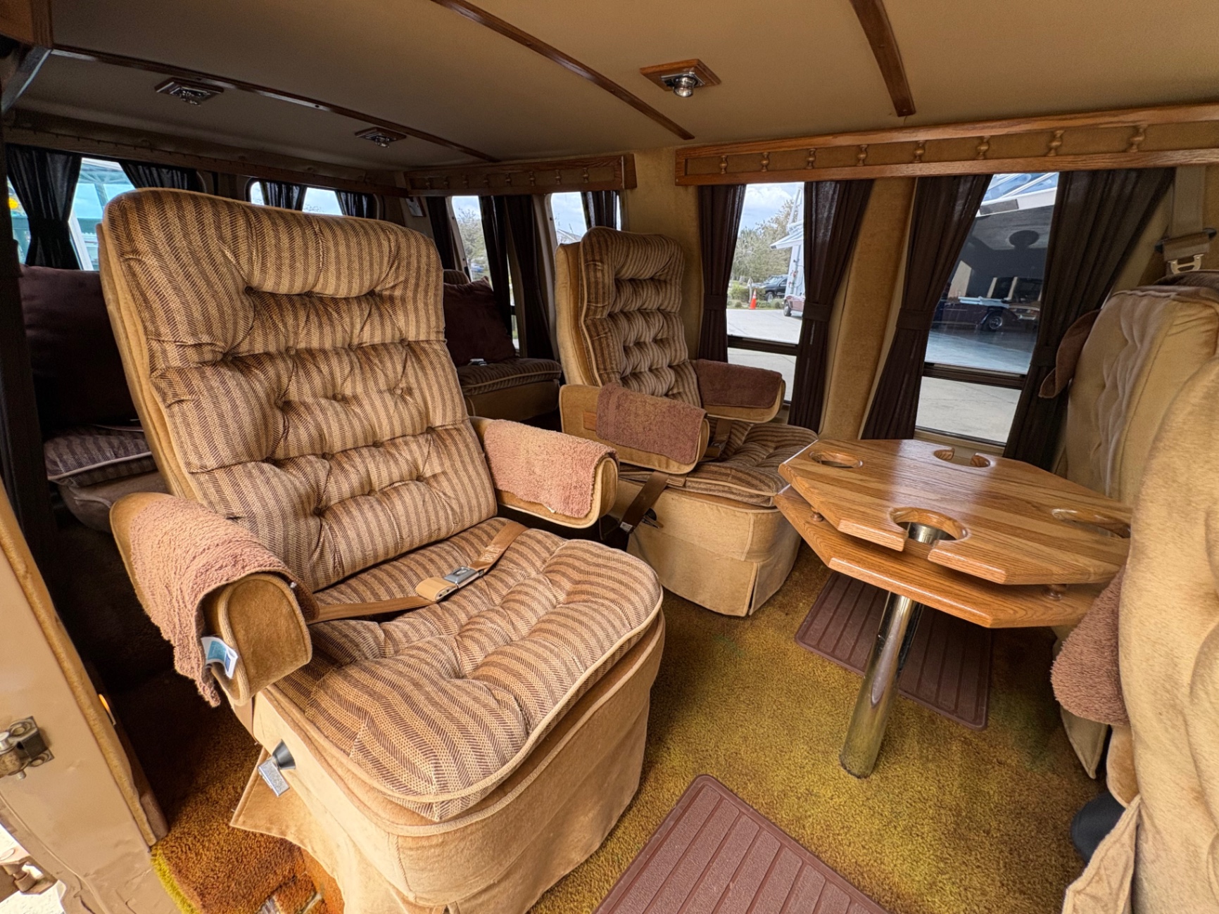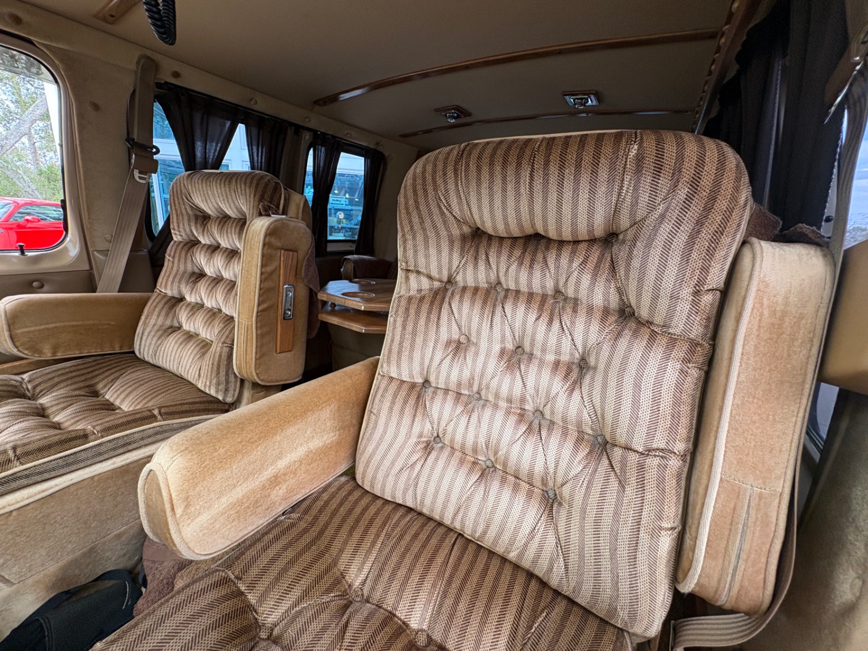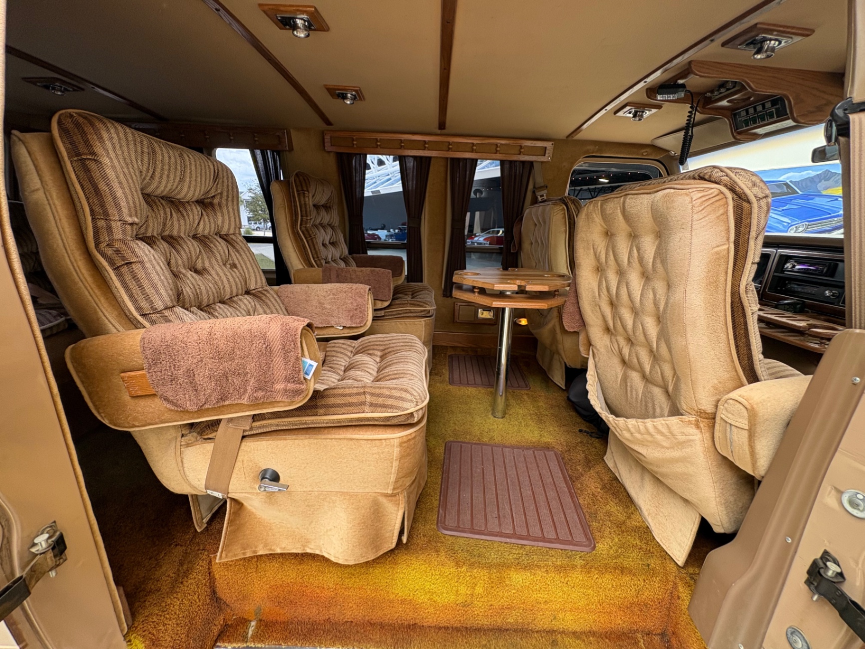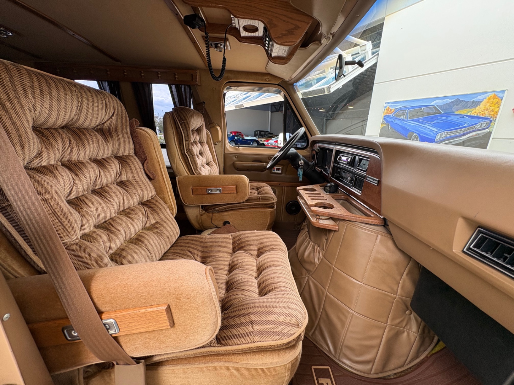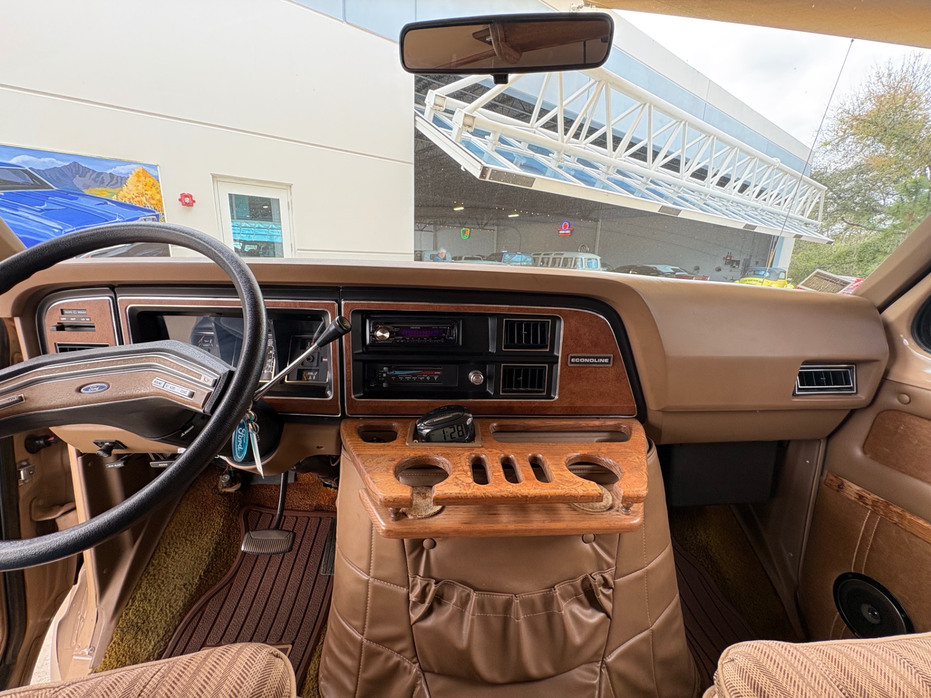 The interior of this 1987 Econoline is designed for comfort and convenience. The custom conversion interior features plush cloth seating in a warm brown color which is not only inviting but also practical for family outings. The upgraded Sony speakers and aftermarket CD stereo mean that your favorite tunes can accompany you wherever you go, enhancing the atmosphere within the cabin. With power windows and locks, you’ll enjoy modern conveniences usually not found in older models. The addition of wood trim accents elevates the interior's aesthetic, blending vintage charm with a touch of luxury.