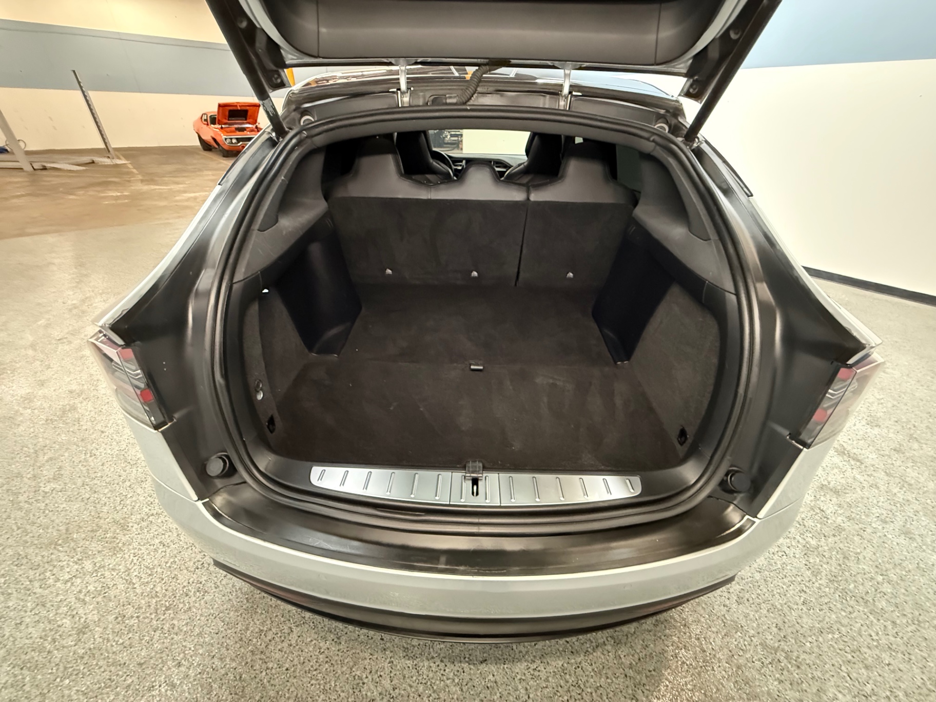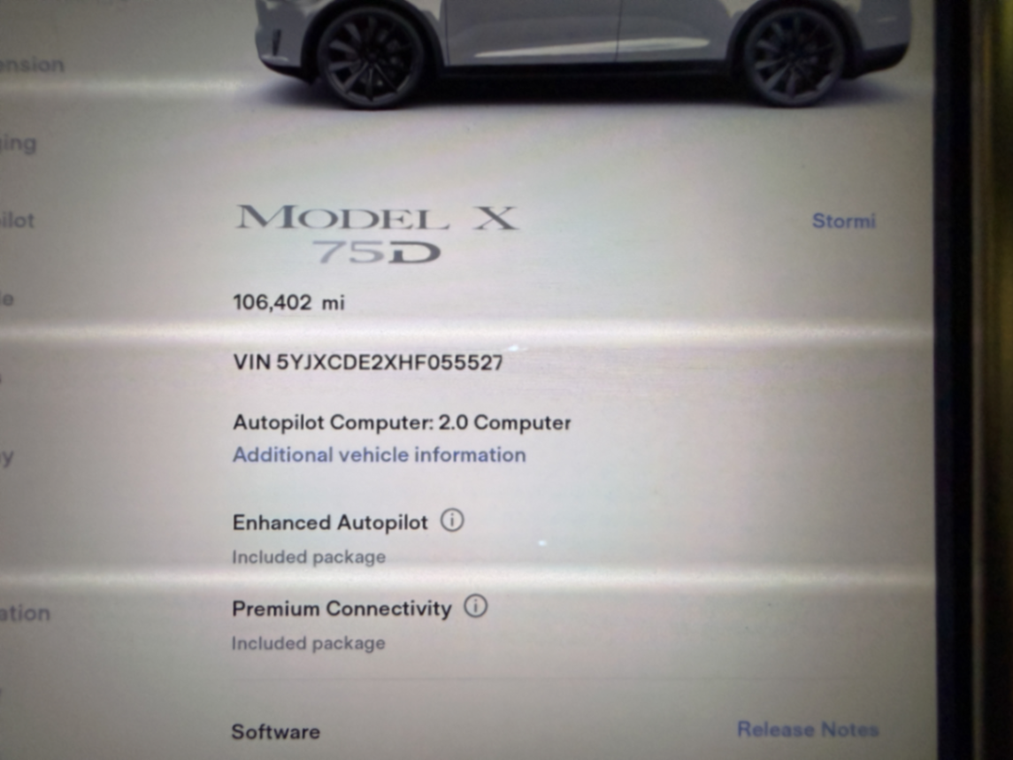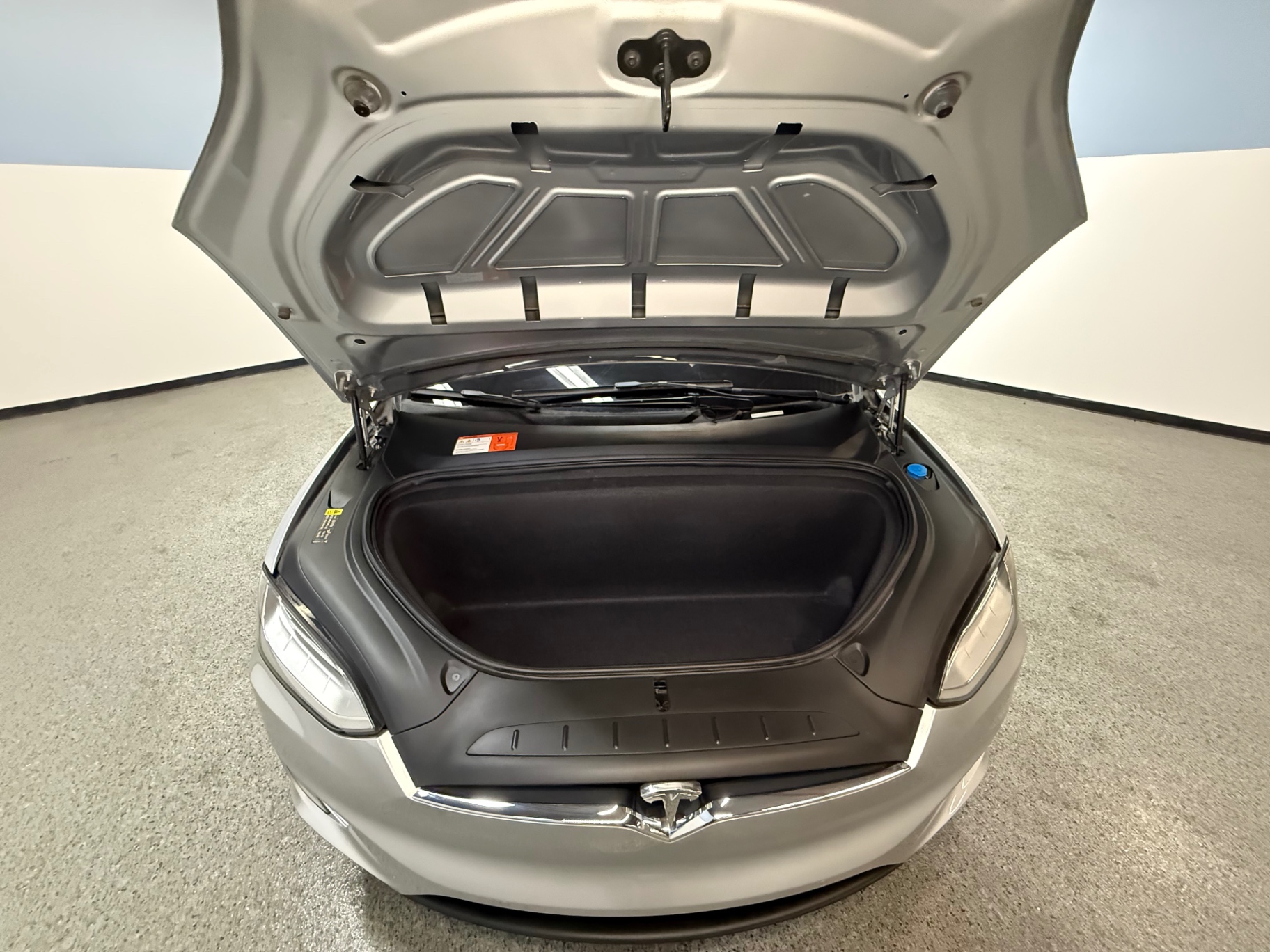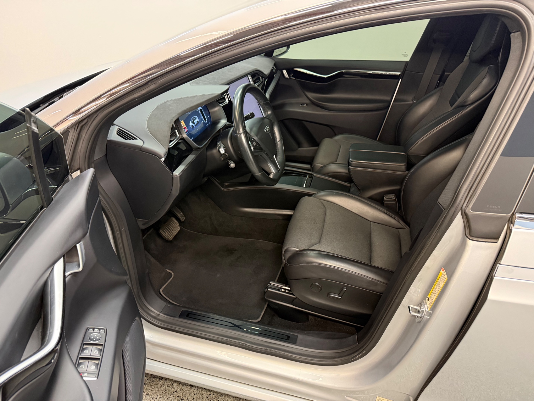 90 kWh battery Dual Motor All-Wheel Drive (AWD) 155 mph top speed 257-mile EPA-estimated range Smart Air Suspension with GPS memory Falcon Wing rear doors Panoramic glass windshield 17-inch vertical touchscreen command center Autopilot Hardware 2.0 with 8 cameras and 12 sensors Premium Upgrades Package Self-presenting driver's door Medical-grade HEPA air filtration with Bioweapon Defense Mode Ultra High Fidelity Sound System Subzero Weather Package Heated front and rear seats Heated steering wheel Wiper blade defrosters 12 airbags Automatic emergency braking Blind-spot monitoring Lane departure warning Power liftgate Front trunk (frunk) 20-inch alloy wheels LED headlamps with auto-leveling Free over-the-air software updates Unlimited lifetime free supercharging