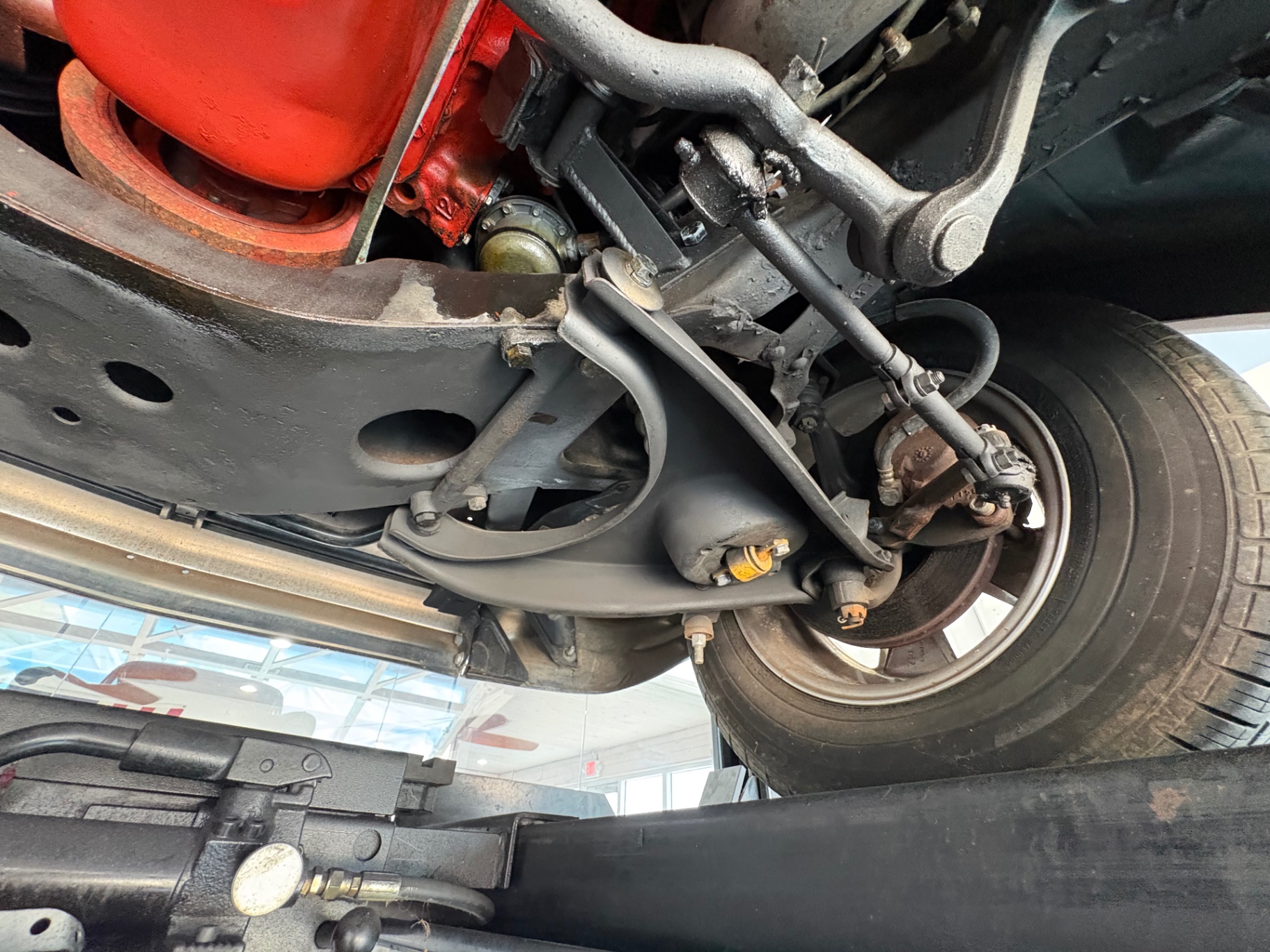 Stopping the car is handled by a 4-wheel disc brake conversion, which is one of the most practical upgrades you can make to a 1957 Chevrolet. The factory drum brakes on these cars were adequate for 1957 traffic speeds and tire technology, but they are genuinely outmatched on modern roads. Four-wheel disc eliminates that concern entirely and gives the driver consistent, fade-resistant braking regardless of conditions. The late model rear end rounds out the drivetrain updates, providing a stronger, more reliable axle assembly than the original and making parts sourcing straightforward for years to come.