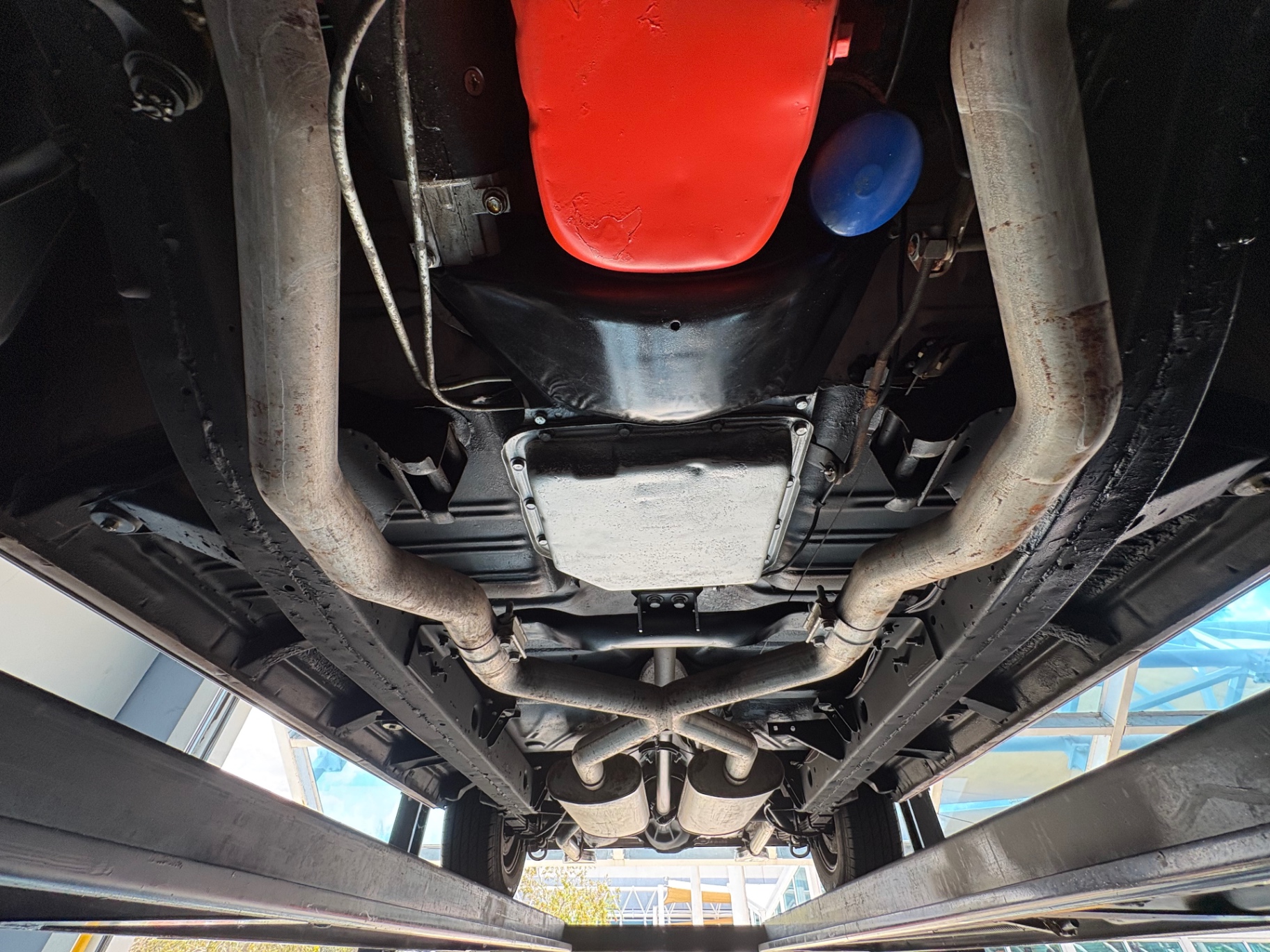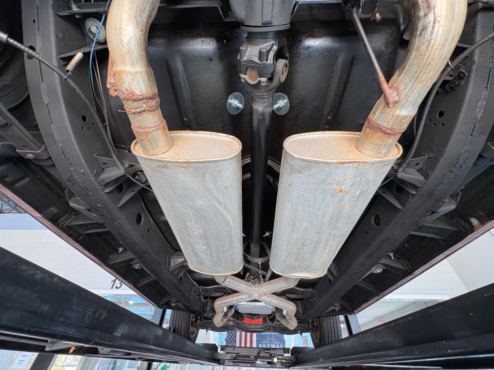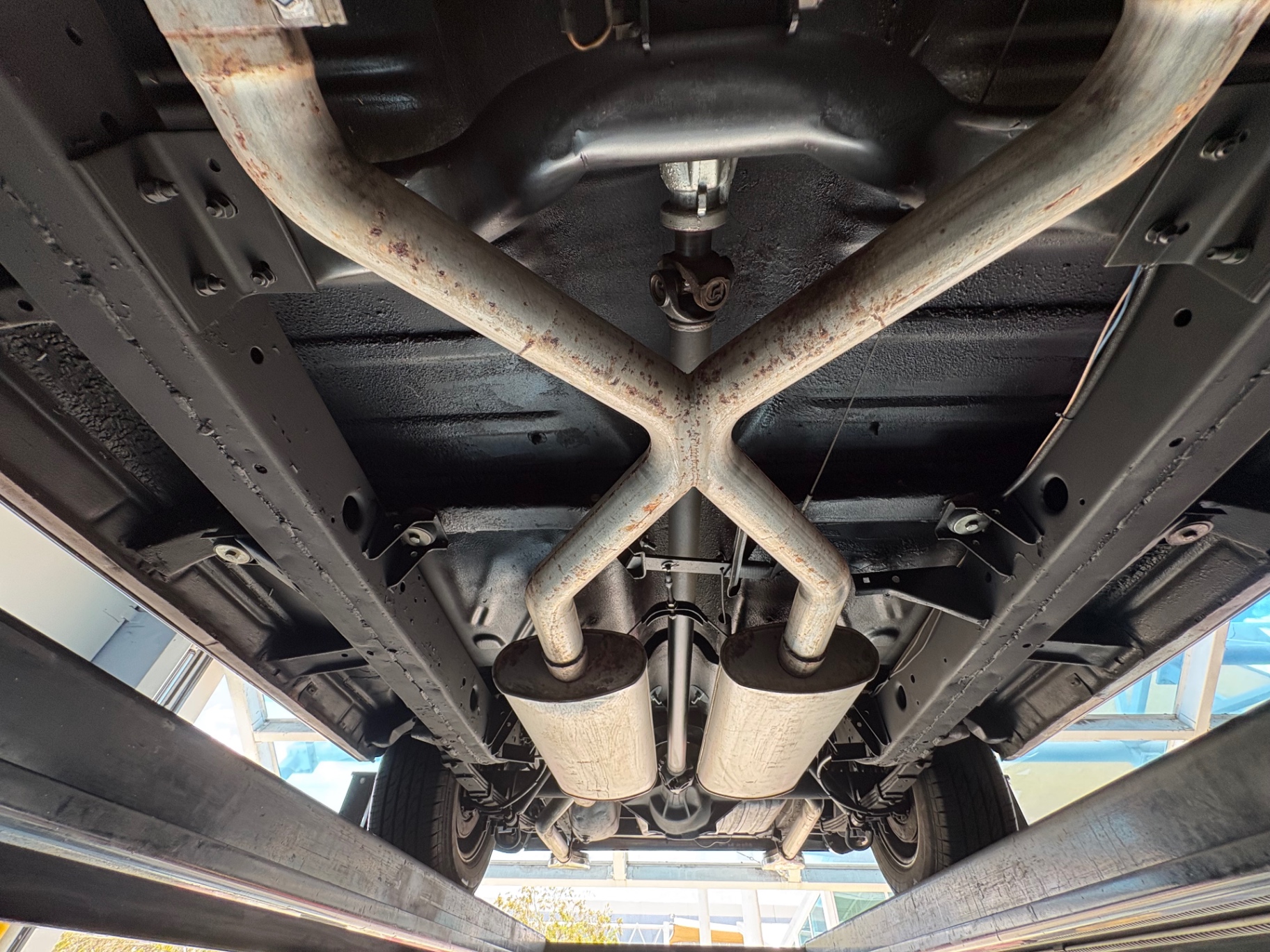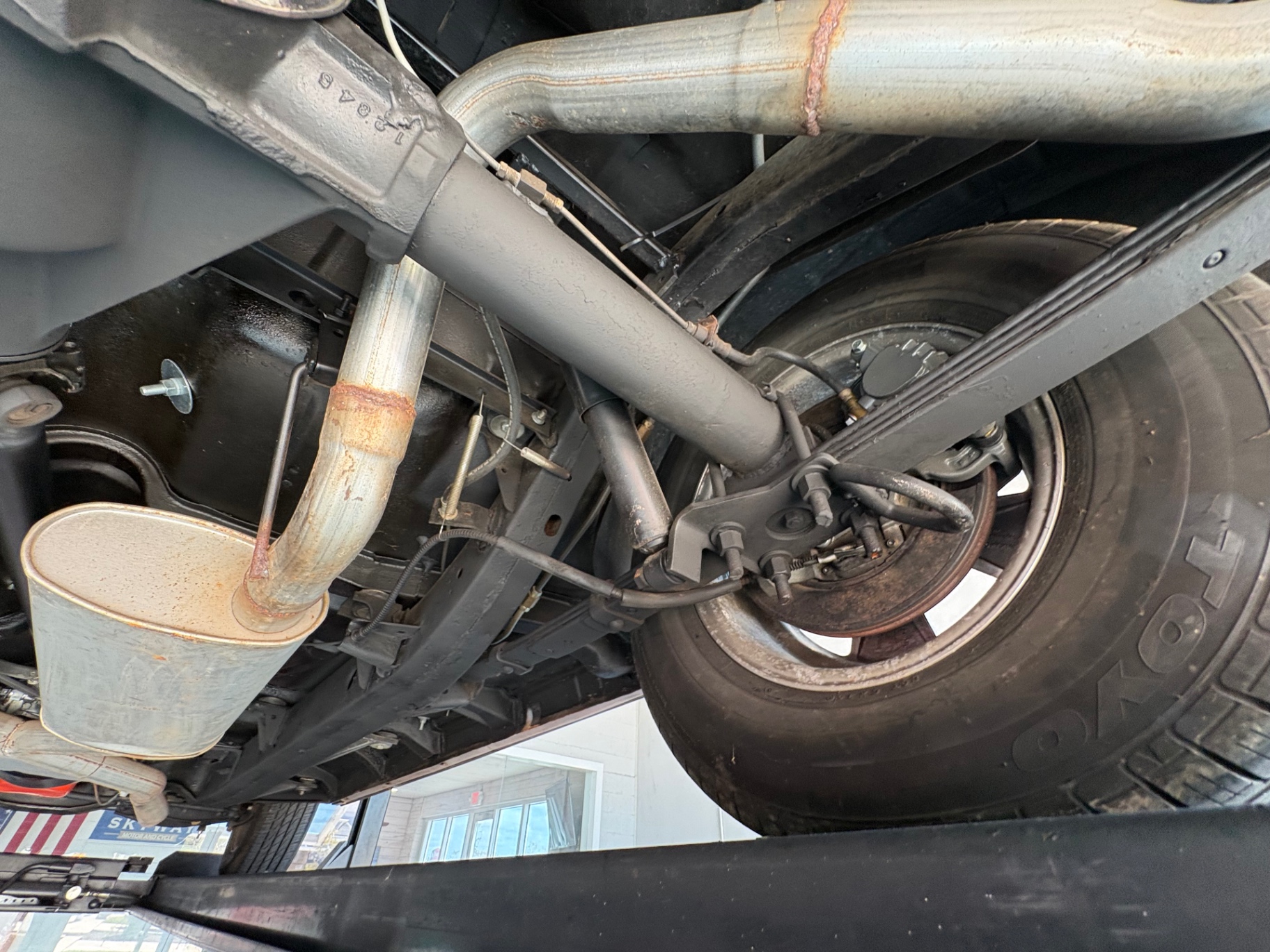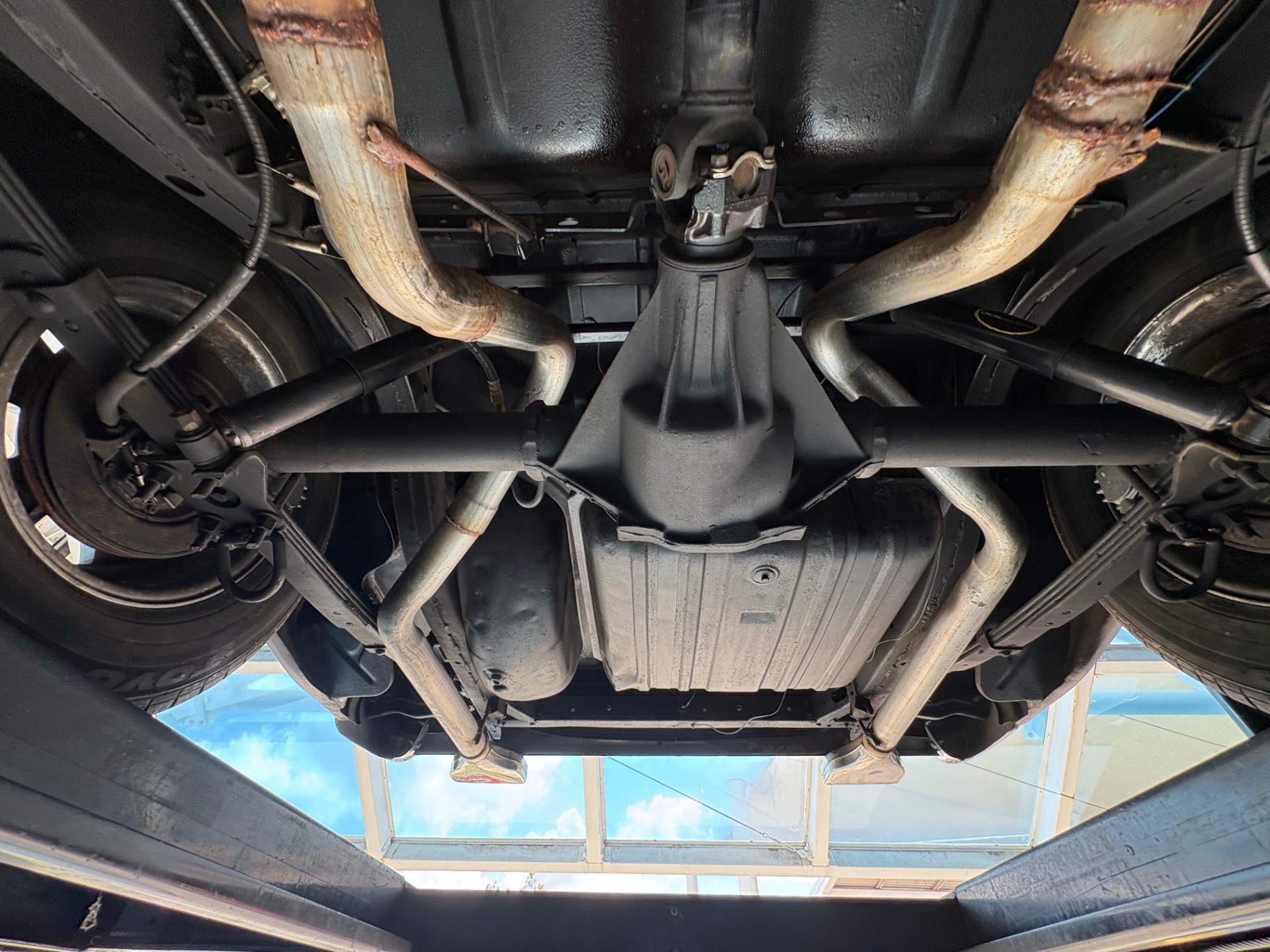 The underside photos confirm a solid, clean undercarriage — a straight rear axle housing, clean exhaust routing exiting through the bumper valance, and no visible rust or patchwork. For a Florida car that gets driven, this is exactly what you want to see.