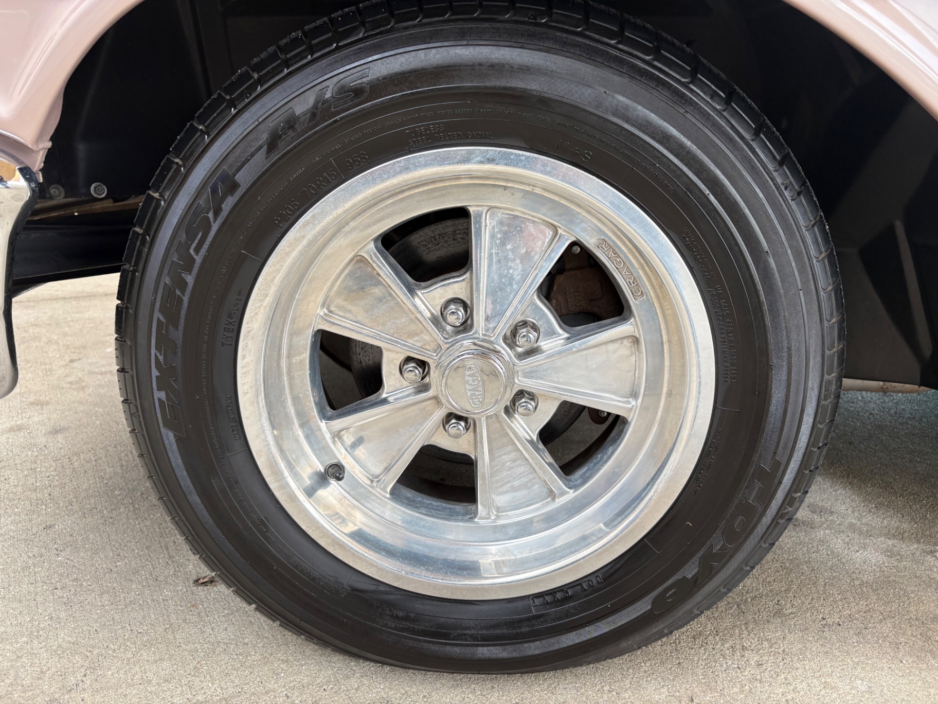 - GM 350 cubic inch V8, rated at 325 horsepower, with double hump (camelback) cylinder heads - 4-wheel disc brakes - Late model rear end - Vintage air conditioning system - Full custom interior with power windows and power seat - Dakota Digital gauge cluster - Custom auto sound system - Leather-lined trunk - Danchuk third brake light - LED tail lights - Custom-ordered Cragar mag wheels - Correct rocker panel moldings - Dual side mirrors - Tinted glass - Restored in 2008