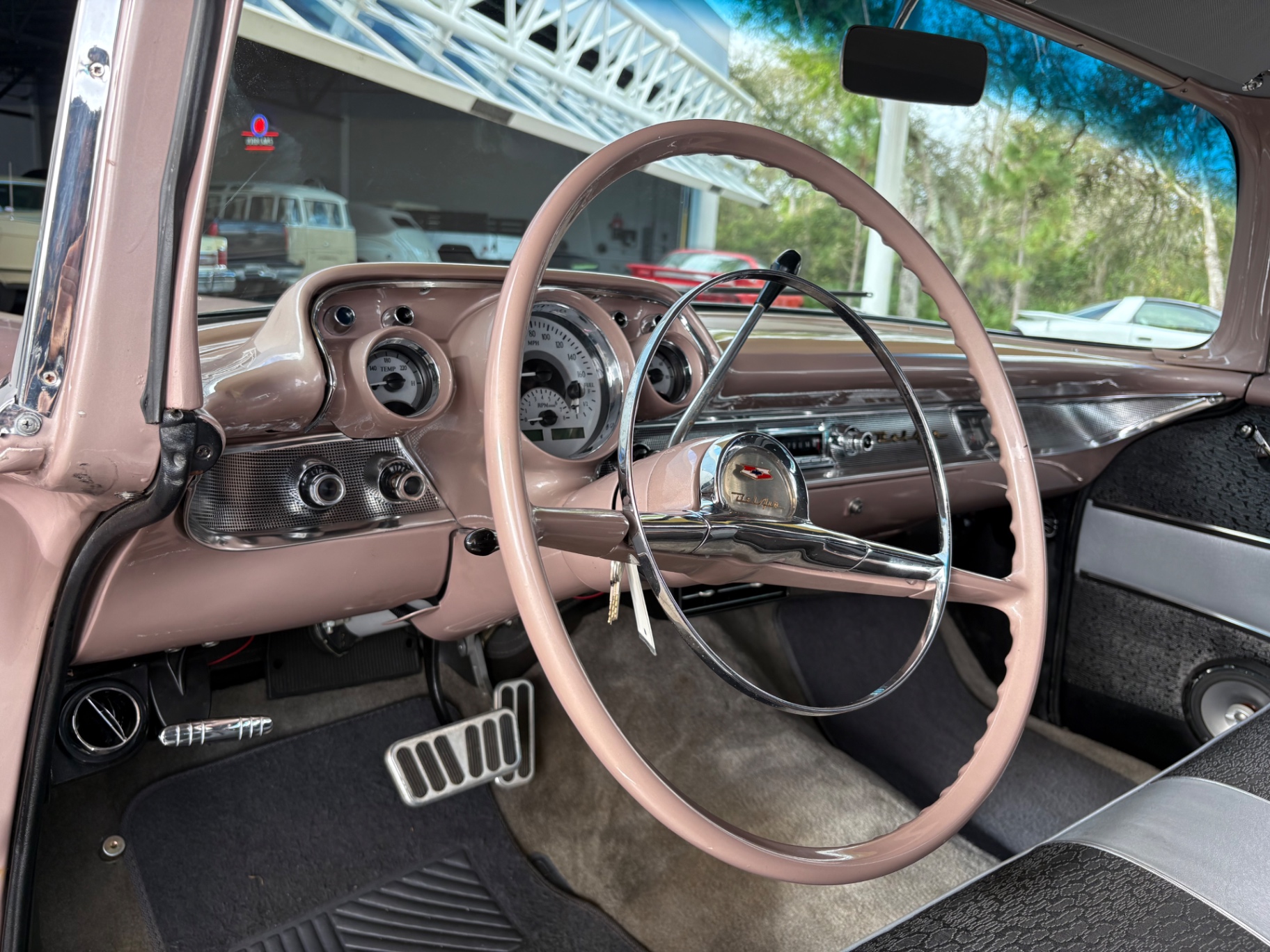 Vintage Air supplies the air conditioning system. For anyone not familiar, Vintage Air is the industry standard for classic car climate control. Their systems are purpose-built for early vehicles, designed to fit within the original dash and firewall layout, and they cool effectively in real heat — important context if you plan to drive this 1957 Bel Air in Florida summers.