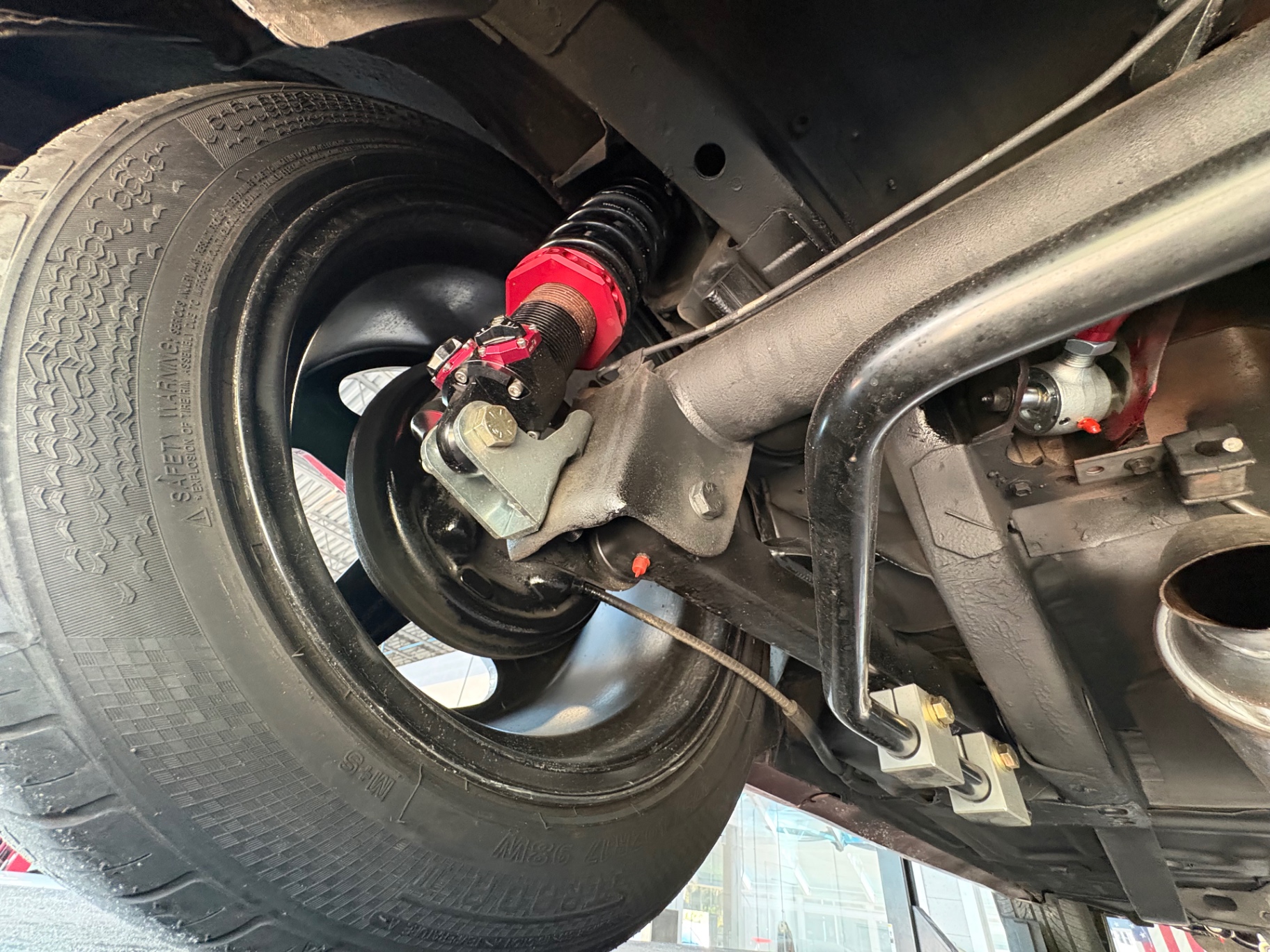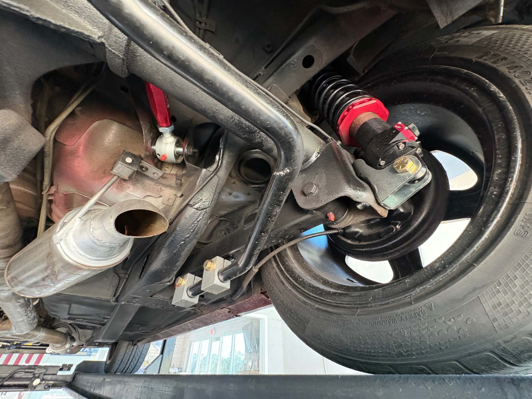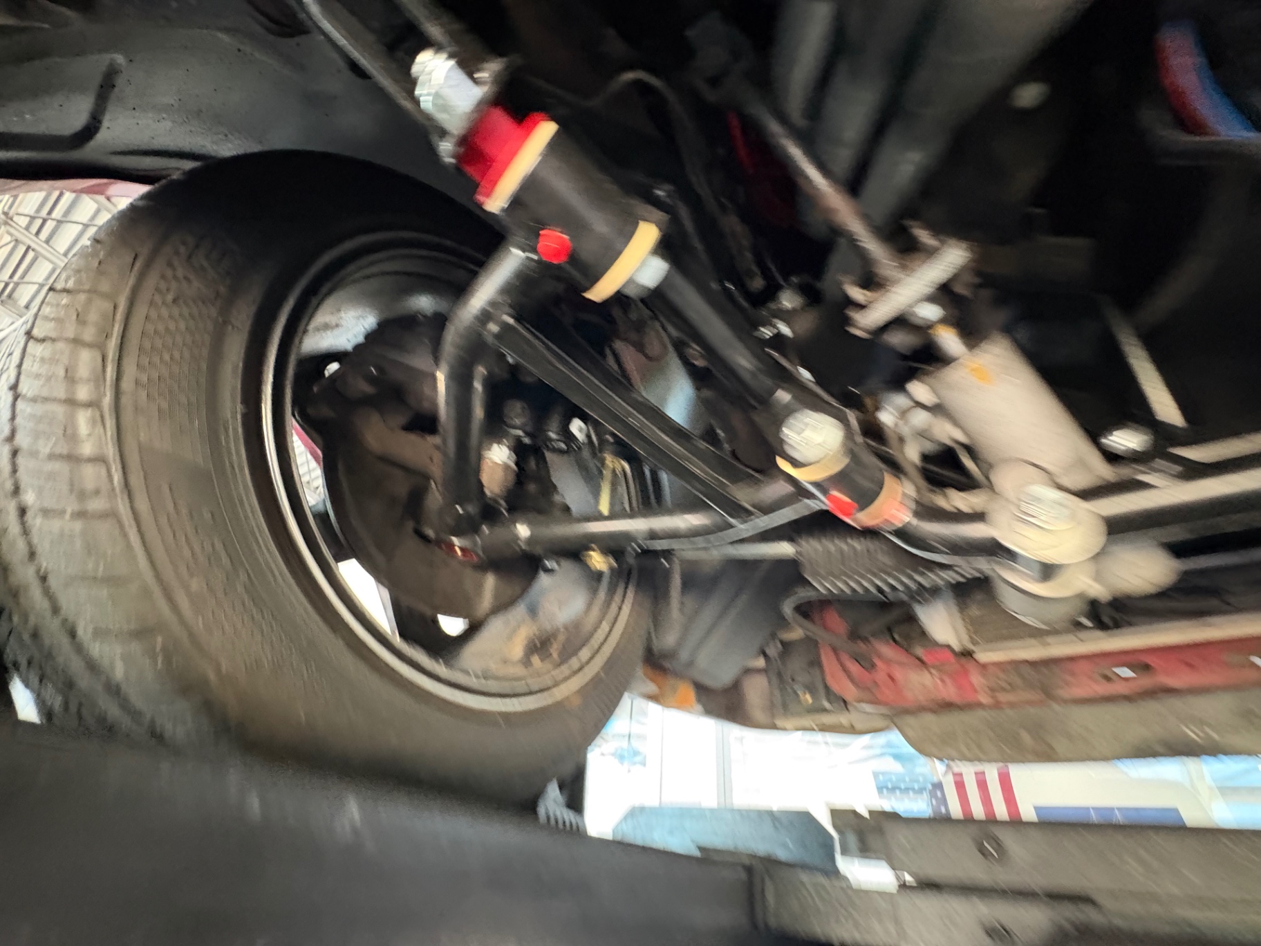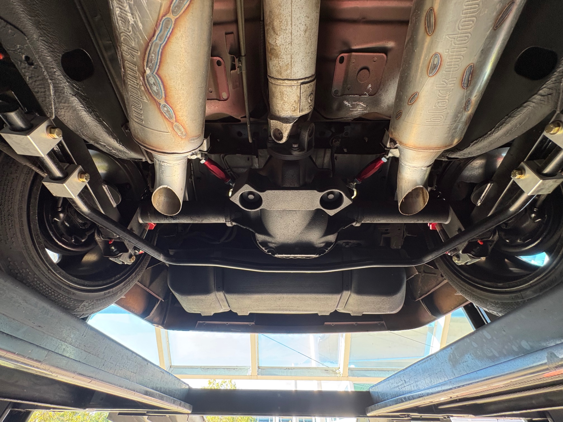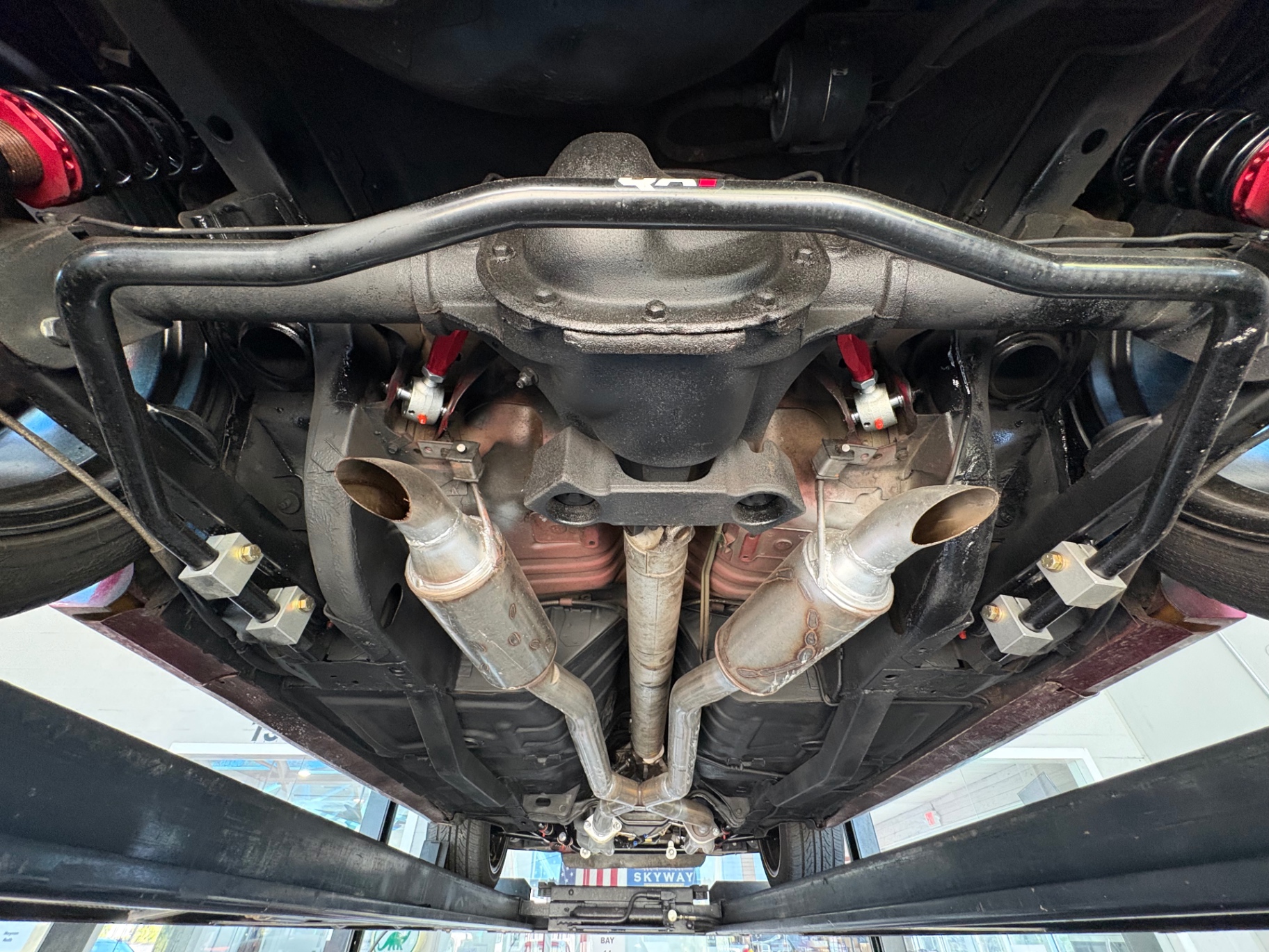 Underneath, this 1993 Ford Mustang GT has received a full QA1 suspension system. QA1 is a Minnesota-based manufacturer that produces adjustable shocks, struts, and suspension components widely used in both drag and road racing applications. The Fox Body's factory suspension was a known compromise — effective enough for street use but soft and imprecise under hard cornering or acceleration. A complete QA1 suspension system transforms the handling characteristics of the platform, bringing it in line with how a car carrying these engine modifications should actually behave. The five-speed manual transmission remains in place, keeping the driver directly connected to the powerplant.